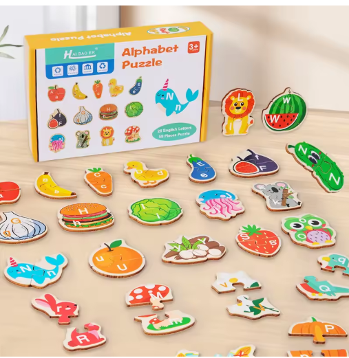 أحجية أبجدية خشبية ثلاثية الأبعاد مونتيسوري للأطفال الصغار ، أحجية كرتونية ، بانوراما فواكه وخضروات ، ألعاب تعليمية مبكرة ، هدايا للأطفال