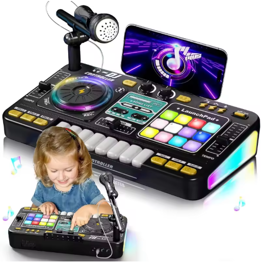 ألعاب خلط DJ للأطفال متعددة الوظائف بلوتوث DJ لوحات المفاتيح القرص الدوار تحكم أطفال آلة موسيقية لعبة تعليمية