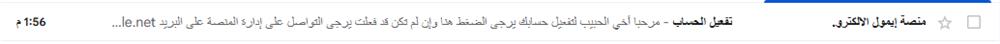 5-قم بالضغط على رابط تفعيل الحساب الموجود في البريد بعدها سيتم توجيهك الى مركز الخدمات وذلك لتفعيل البريد كما في الصورة.